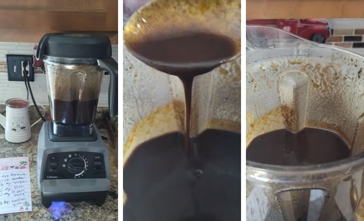 2. Blend Until Smooth: Blend on high speed for about 2 minutes. The mixture will look thin at first, and that is normal. The vanilla beans should break down into very small pieces, almost like tiny dots. A heat or soup setting helps soften the beans more.