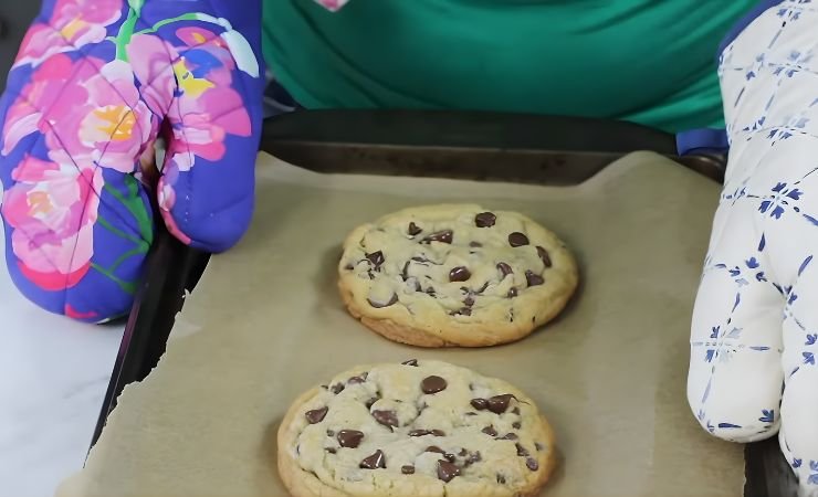 - Crowding the Baking Sheet – I learned this the hard way. When you place too many dough balls on one sheet, the cookies spread into each other and bake unevenly. Only put two or three large cookies per sheet.