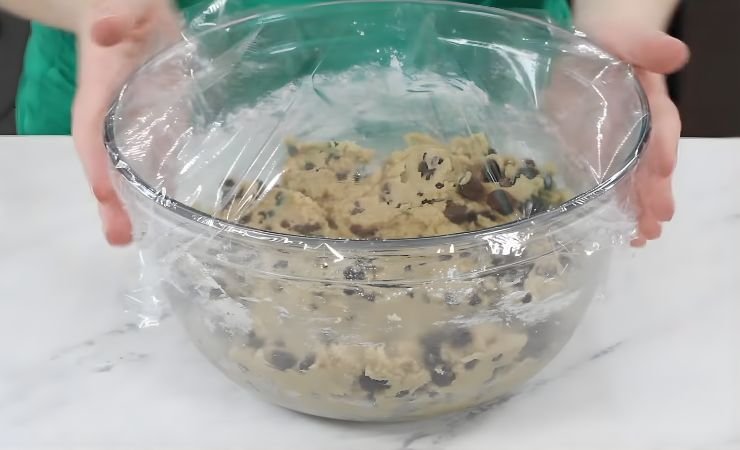 8. Chill the Dough: Cover the bowl with plastic wrap and place it in the fridge for one hour. This step helps the dough firm up so the cookies bake thick and soft.