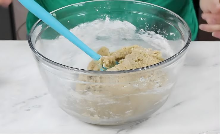 - Combine Wet and Dry: Pour the dry mix into the wet mix little by little. Stir slowly. The dough will get thick and sturdy. Make sure all the flour blends in well.