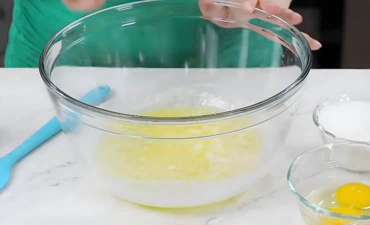 1. Melt the Butter: Place the butter in a microwave-safe bowl and heat it until fully melted. Let it cool to room temperature. Warm butter mixes well, but hot butter can cook the eggs, so cooling is important.