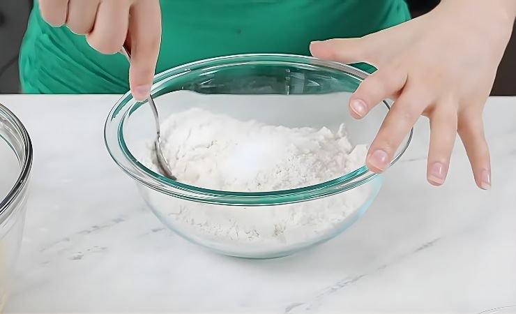 - Mix Dry Ingredients: In a separate bowl, add the flour, cornstarch, baking soda, baking powder, and salt. Stir until the mix looks even and no lumps remain.