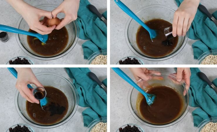 3. Add Eggs, Molasses, and Vanilla: Crack in the eggs. Add the molasses and vanilla. Stir until the wet mixture turns smooth and glossy. Every part should blend together without streaks.