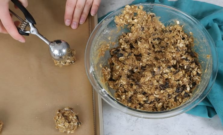 9. Scoop the Dough: Use a cookie scoop or spoon to form dough balls about 2 tablespoons in size. Place them on the baking sheet. Leave space between them so they can spread.