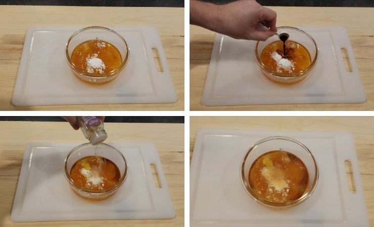 3. Add Seasonings and Thickener: Sprinkle in one and a half teaspoons of cornstarch. Add half a teaspoon of soy sauce, half a teaspoon of yellow mustard, one-fourth teaspoon of salt, and one-eighth teaspoon of garlic powder. These ingredients build depth and flavor.